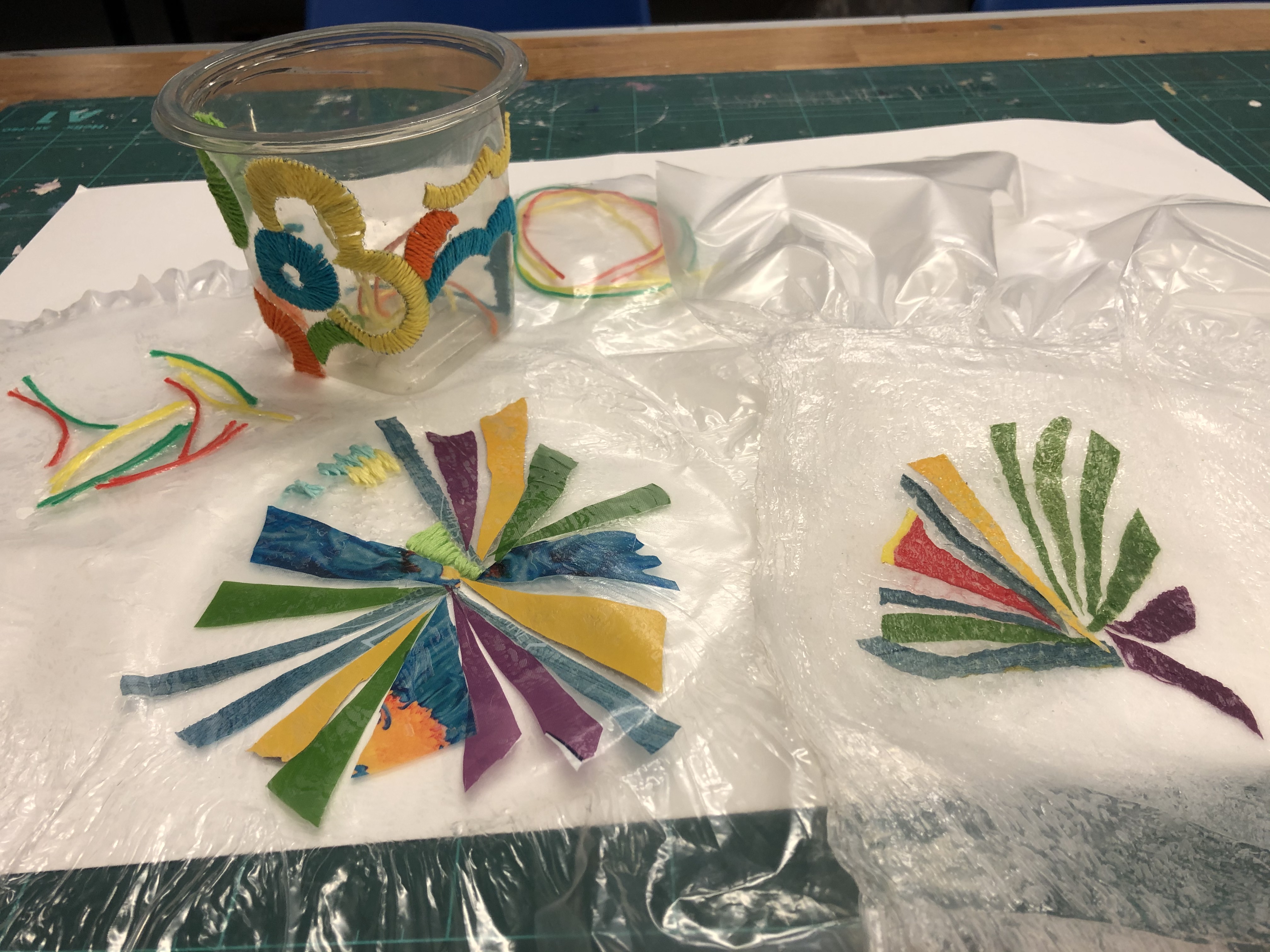 Students have also been experimenting with embellishing plastic packaging.